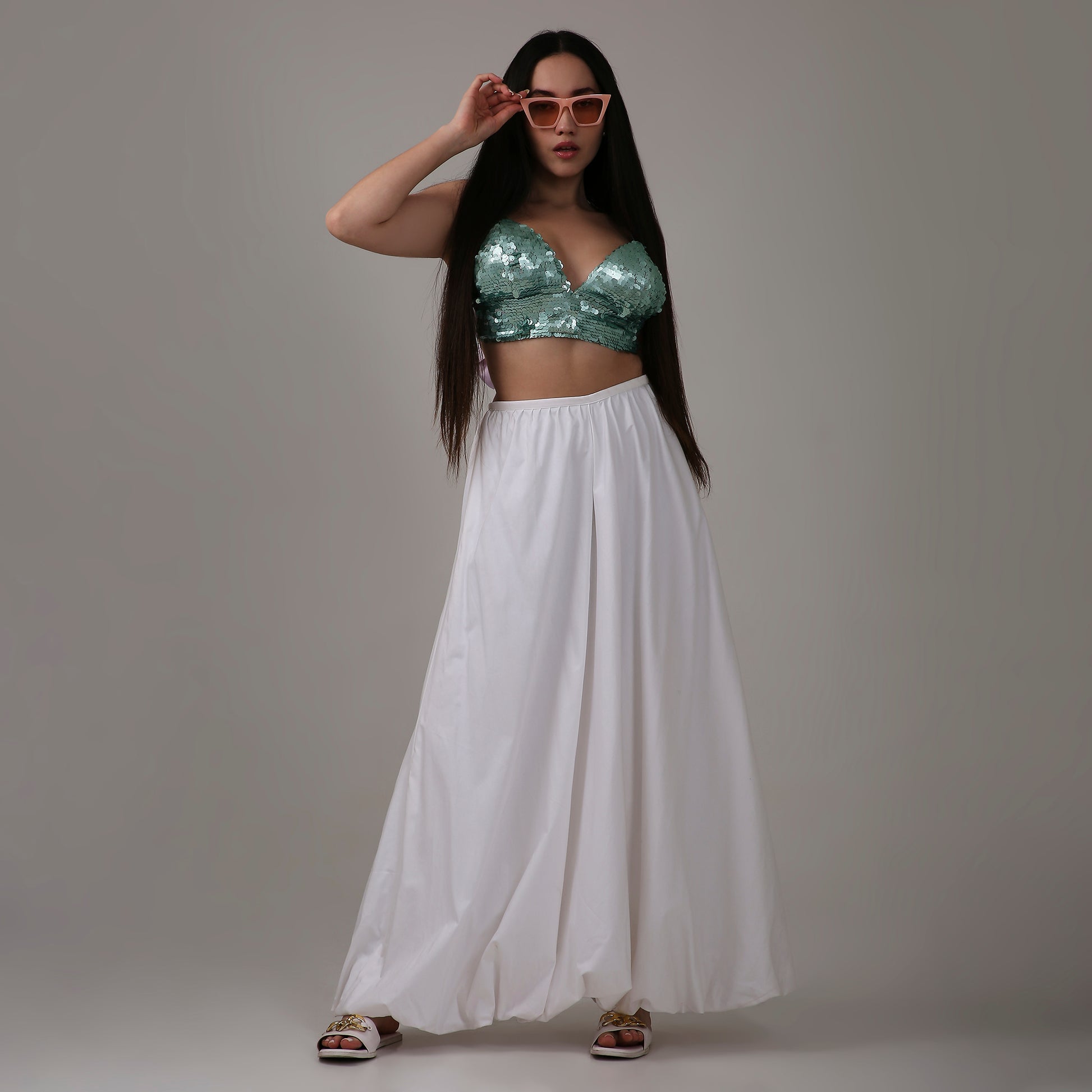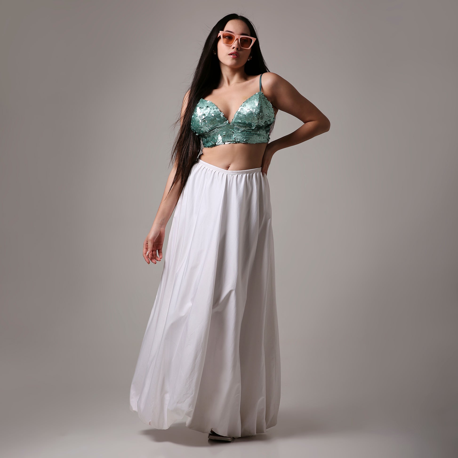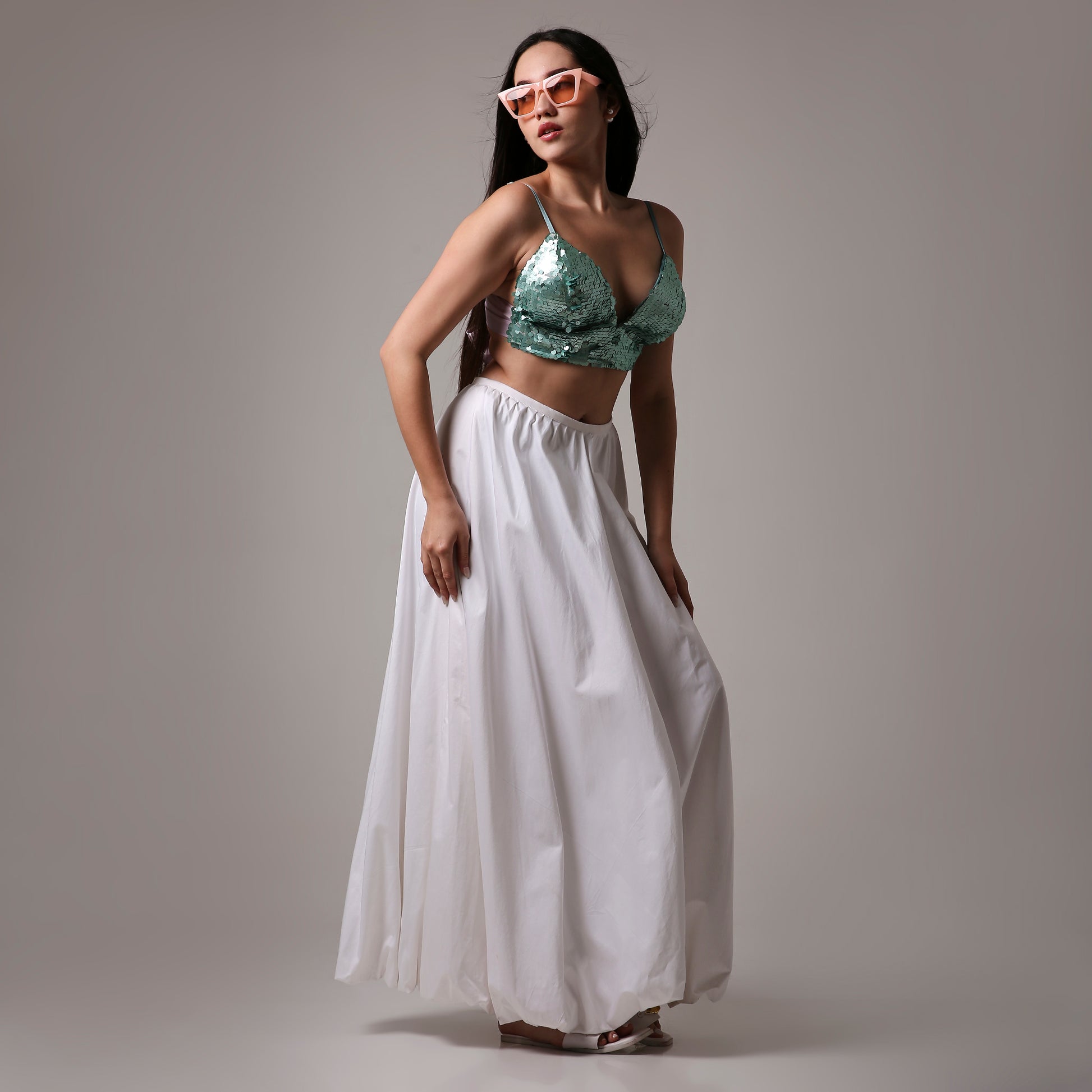 Look effortlessly stylish and stylishly comfortable with this Balloon Hem Parachute Maxi Skirt. Its lightweight, long silhouette adds an elegant touch to any outfit, while its parachute cut allows for an easy fit and comfortable day. Perfect for casual days, style it with any top or corset for a fun and fashionable look. Float through the day with ease and confidence!