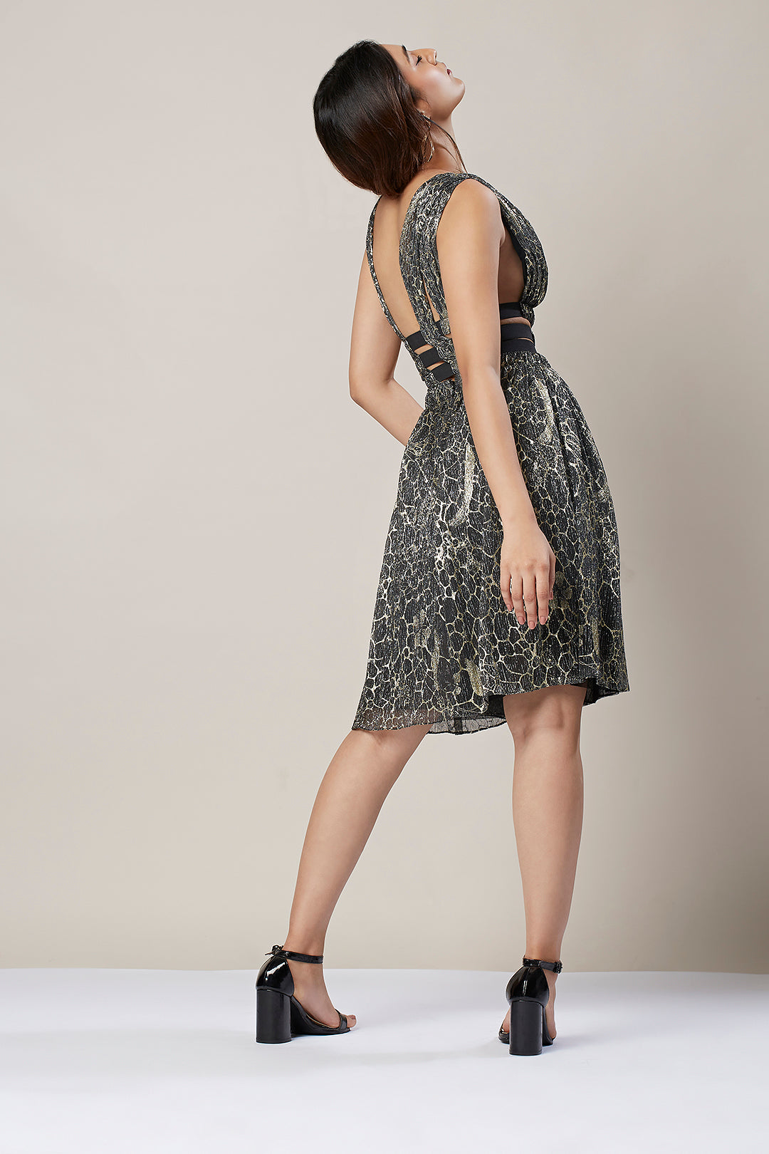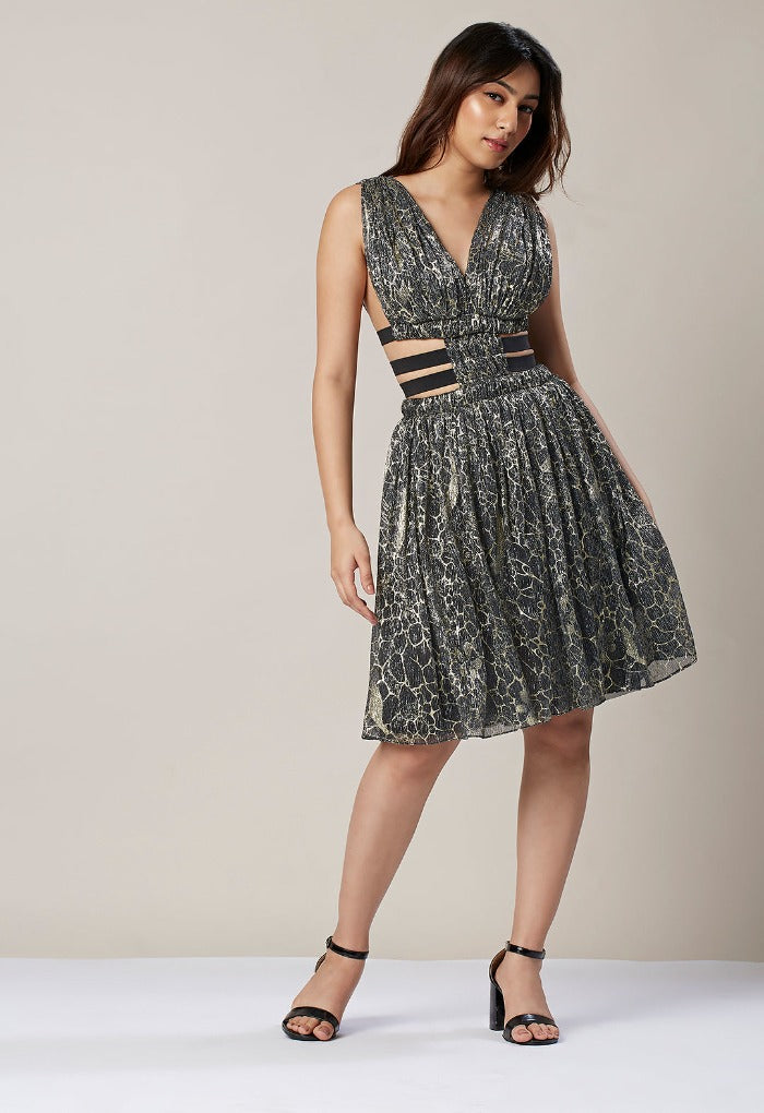 Slip into a eternal style with this gorgeous Clara A-line dress! This ensemble is a flattering fashion favorite with a plunging neckline and side cuts. The gathering and synching around the waist allows you to show off your perfect figure. Style with long necklaces to show off the deep V cut, and platform heels to add some edge.