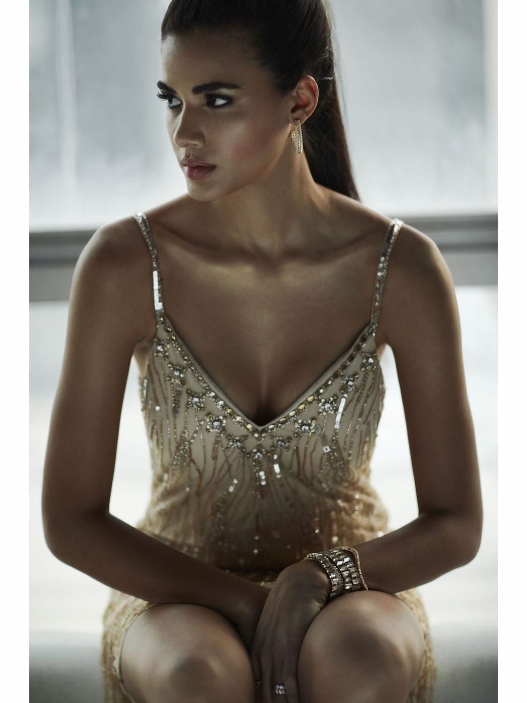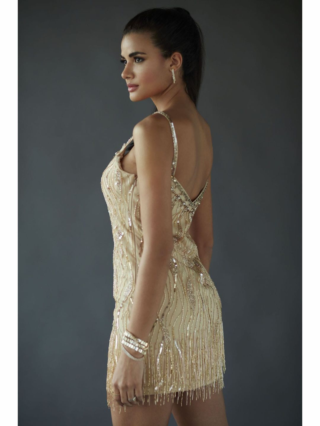 A plunging neckline and a tasseled bottom. The Monaco is one of our personal favourites! The champagne colour oozes elegance whilst the design perfectly adds that much-needed glitz
